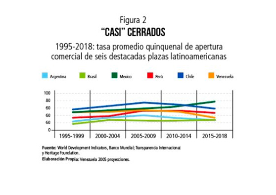 Sobre esta realidad deben destacarse tres observaciones. A pesar de la característica vulnerabilidad externa de nuestras economías, vale la pena destacar que hablamos de países que por su institucionalidad son mucho más cerradas al comercio exterior que otras altamente conectadas con el exterior (ver Figura Dos).